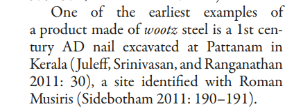 A nail made of wootz steel dating 1st Century CE was found Pattanam.