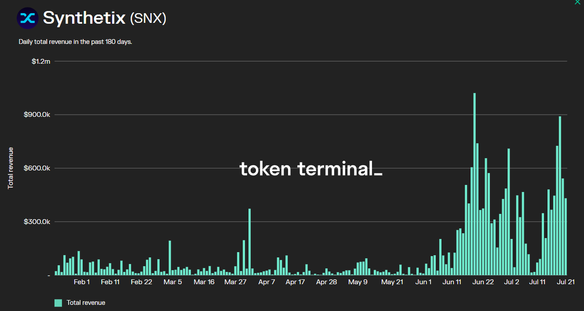 @synthetix_io $SNX hit an all time high in daily revenue last month and has maintained its position as a leading fee generator this month.