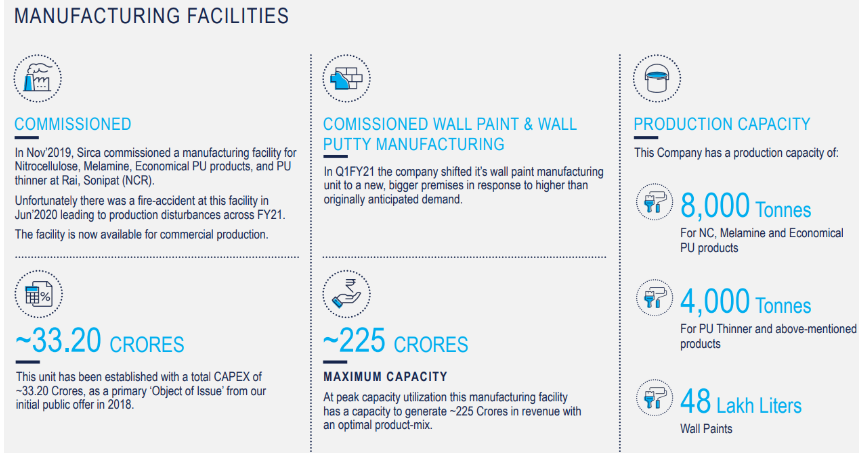 (iii) Adding Resins Manufacturing at Sonipat Facility In efforts to establish control & achieve consistency in quality, they've decided to set up a manufacturing line for resins at its Sonipat facility.