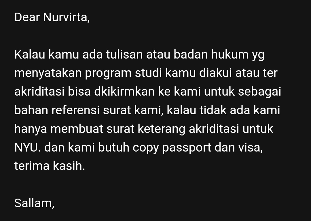 Menurut petunjuk, maka aku harus email KBRI, maka emaillah aku ke KBRI minta surat keterangan bahwa prodi ini ada dan terakreditasi