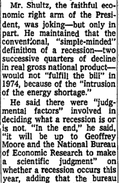 The NBER was viewed as the arbiter of recessions long before Schultz and Greenspan invoked it in the 1970s and 1990s.