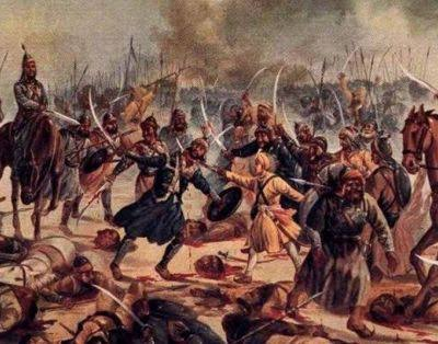 the battalion in front with 30,000 infantry which included armed soldiers, lancers, musketeers, archers, horses, and elephants.