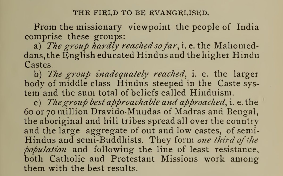 - Middle class Hindus steeped in the caste system. c) Most Evangelised :