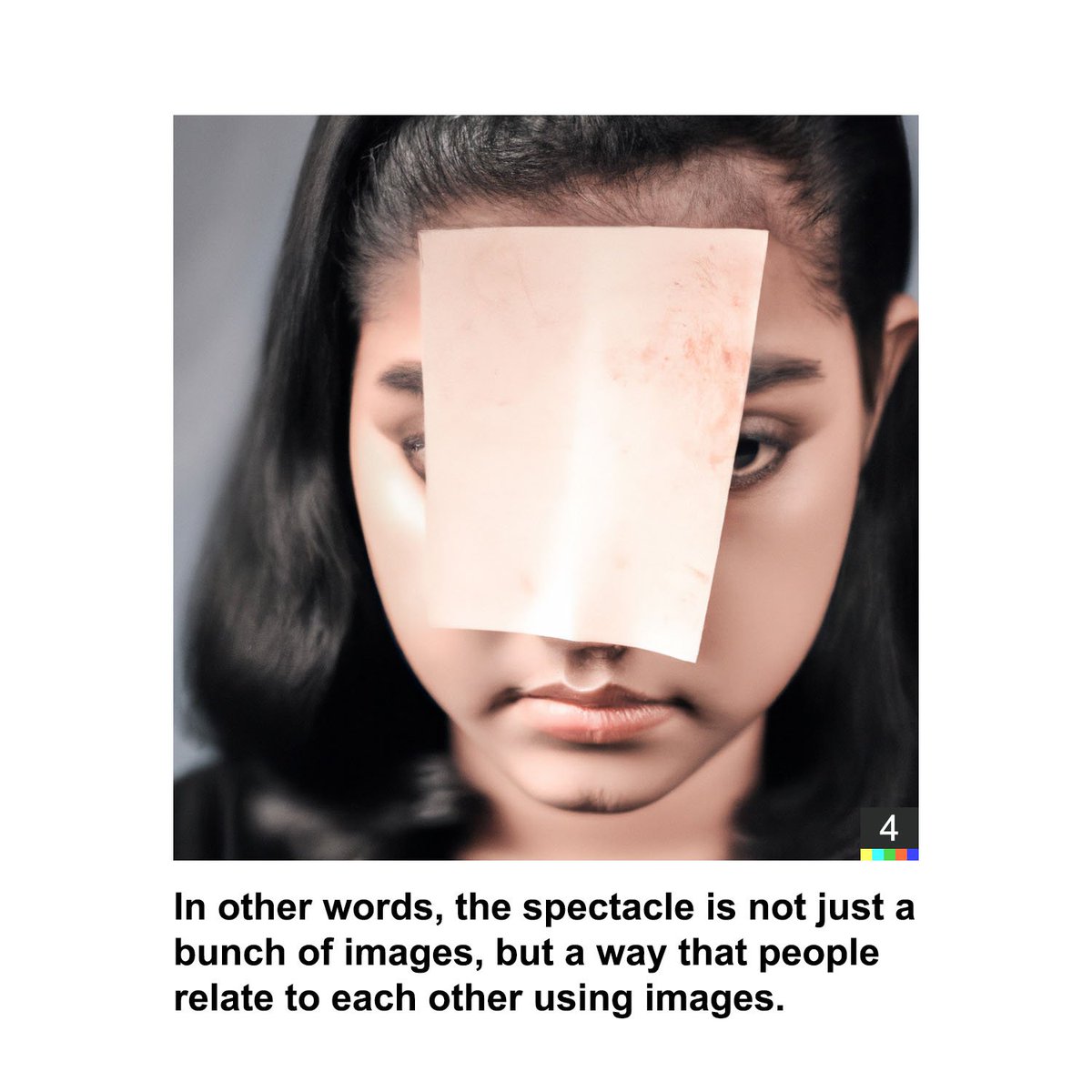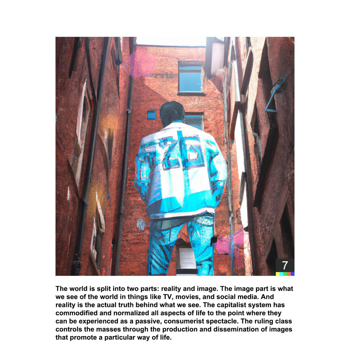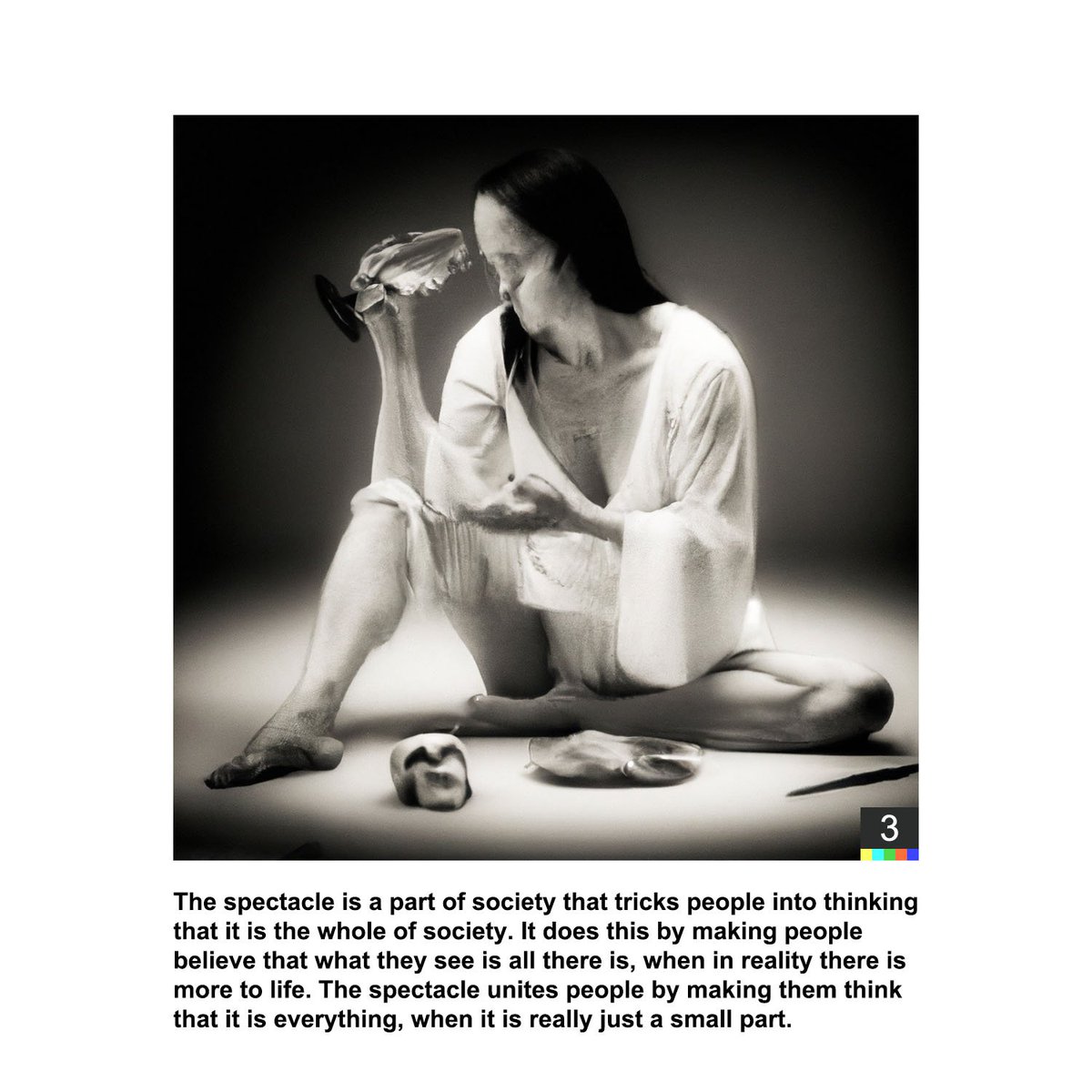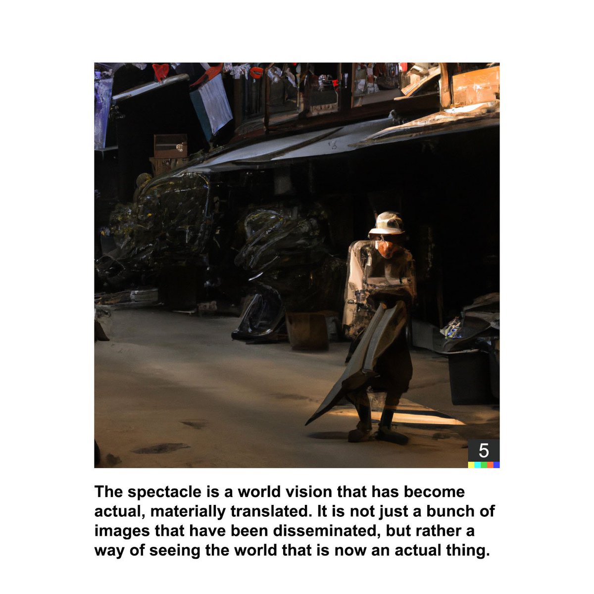 Debord’s “Society of the Spectacle” simplified and visualized using GPT3 and DALL-E 2