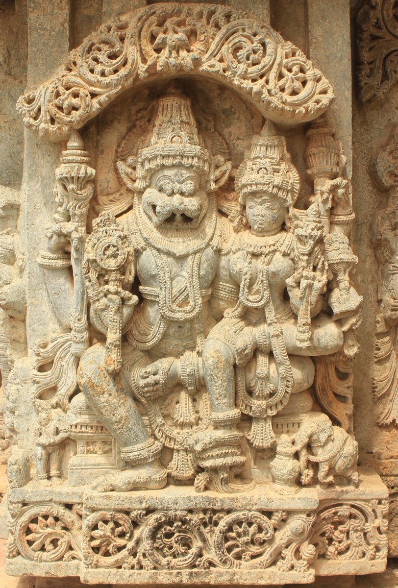 3. In the Lakshmi Narasimha Hoysala temple at Javagal, as at many Hoysala temples we see a peculiar sight. The Trivikrama panel is very famous in Hindu sculpture. This is more popular in south India but not unknown in the north.