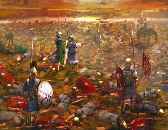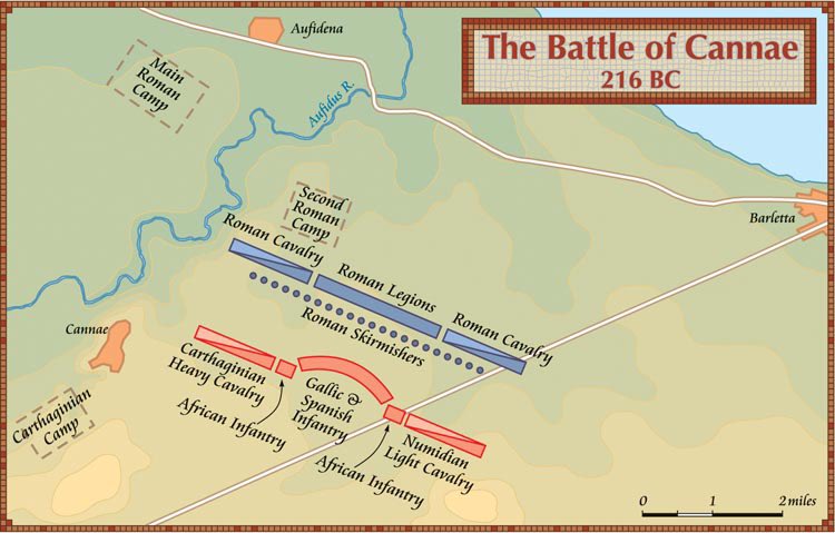 As @bazaarofwar masterfully laid out in this thread, Hannibal’s arced lines forced the Romans to turn inward and all orient to the center of Hannibal’s line. As Hannibal withdrew the Romans continued to march to the center, jostling into a smaller & smaller space.