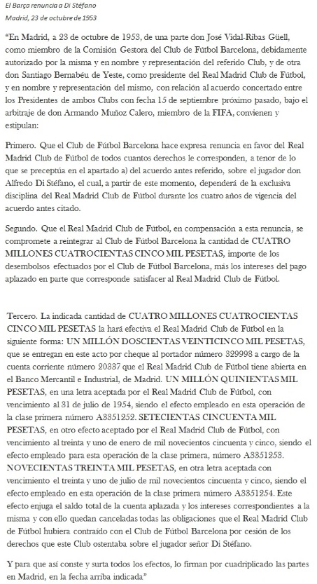 A continuación, las principales pruebas que demuestran que el Real Madrid NO "robo" Di Stéfano al Barça con "la ayuda del Régimen”.