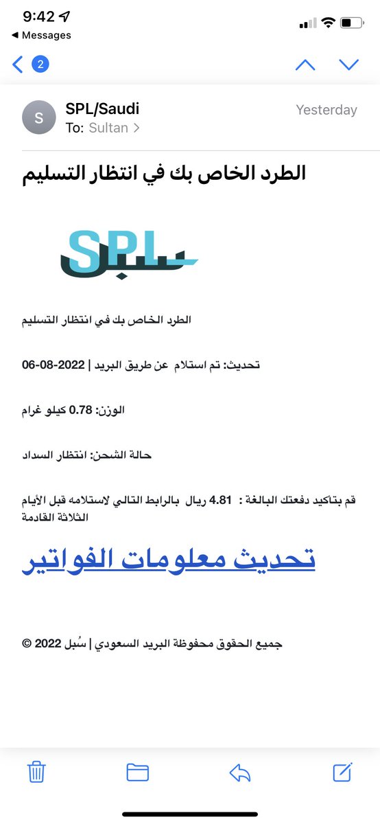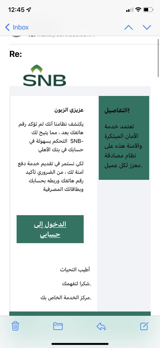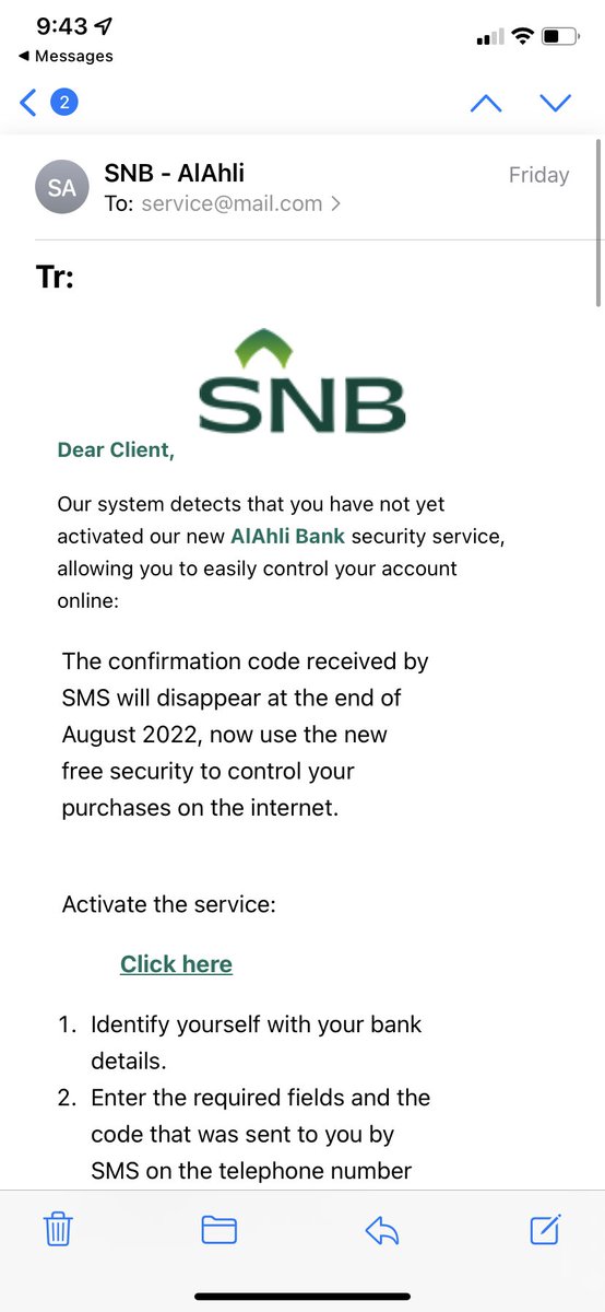 سأنشر تحت هذه التغريدة بعض أشكال رسائل #التصيد التي وصلتني شخصيًا حتى يسهل للبعض التعرف عليها 👇🏼
