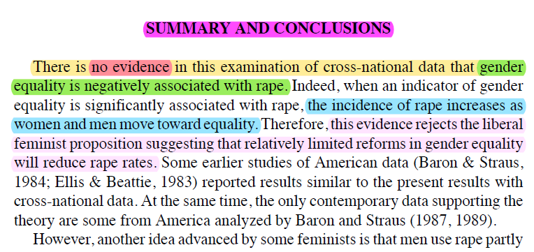 Researchers often base their studies of the relationship between gender equality and rape on the cla...