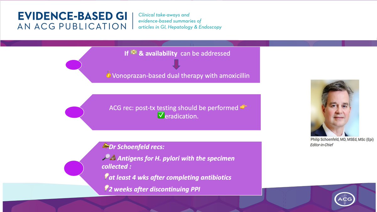 🔦@ACG recs: routinely 🧐 post-tx test of cure:💩 antigen is preferred