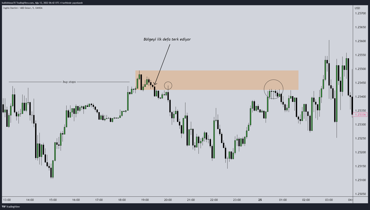1- Fiyat bir kere istekli bir şekilde OB'den uzaklaştıktan sonra, stop noktamızı bloğun %50'sine taşıyabiliriz. Fiyatın %50'yi ihlal etmesi, çok yüksek olasılıkla bölgeyi tamamen ihlal etmesi anlamına gelecektir. Riskimizi azaltmak için önemli bir konudur.
