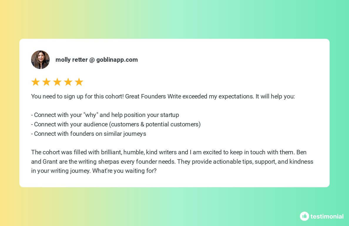 #GreatFoundersWrite is the ONLY writing cohort just for entrepreneurs.