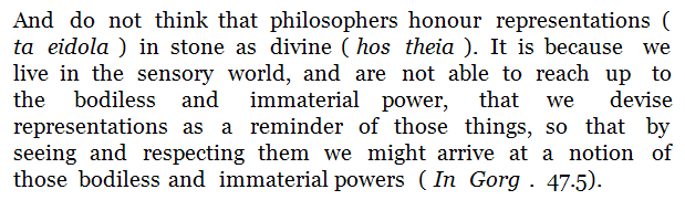 "The Hellenic worshipers of images (eikones) were perfectly aware that images of the gods are merely receptacles and symbols, not divine realities per se.