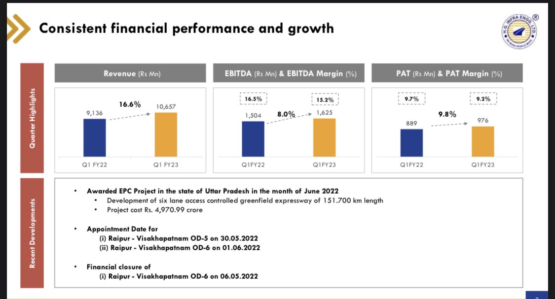 - Co. is positive on sector outlook and opportunities with numerous initiatives increasing the budget allocation for infrastructure spending etc