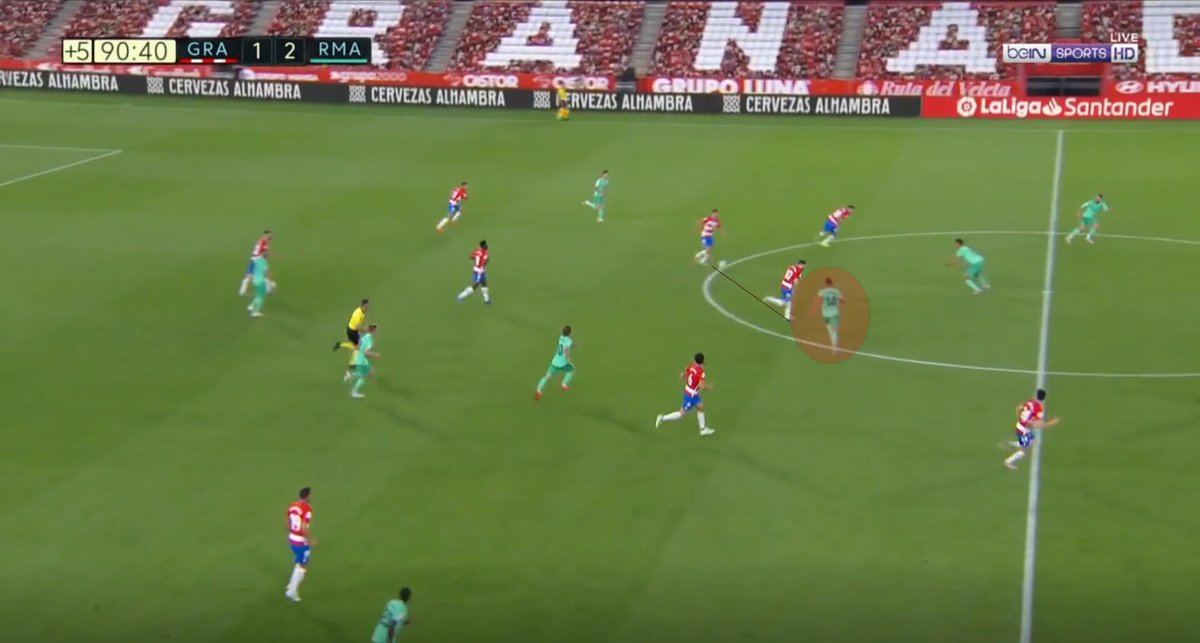 Case has a very important defence style in the way RM played under Zidane and Ancelotti, as he is the last line of defence before reaching the Real Madrid backline because of his ability to move either vertically forward or backward and even move horizontally.