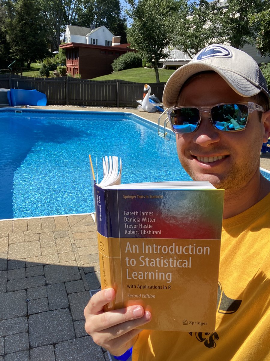 Pool day with one of my favorite books, An Introduction to Statistical Learning.