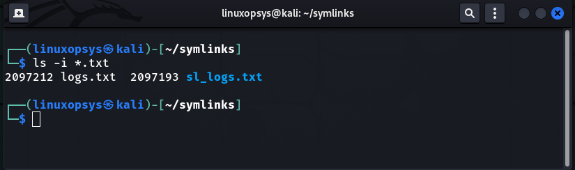 Also, compare the file size of the symbolic link with that of logs.txt file. The symbolic link, sl_logs.txt file, is just 8 bytes long, while the file logs.txt is 46 bytes long.