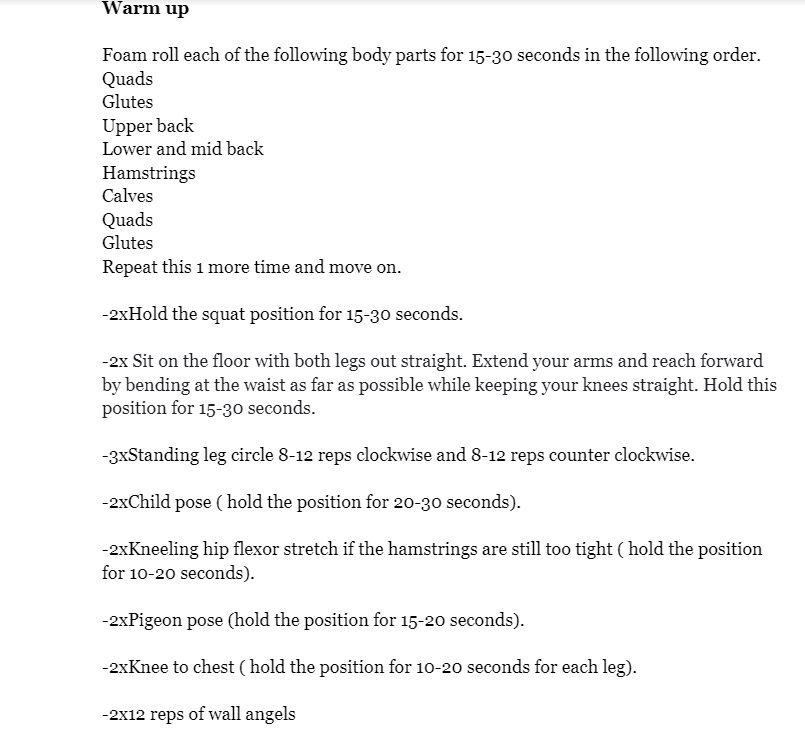 2. 20-45 second hold of the deep squat position for 3 sets.