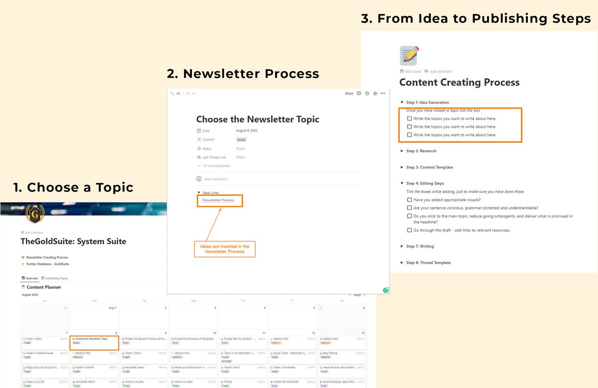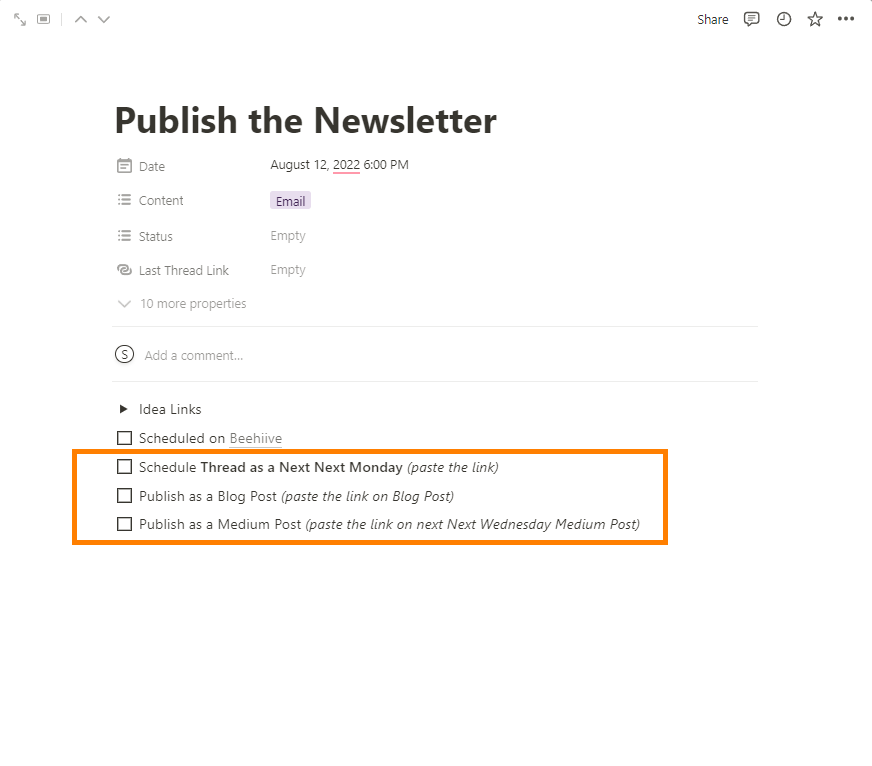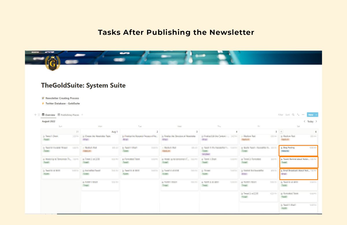 I also repurpose my newsletter, and I have allocated tasks before publishing the newsletter and after publishing the newsletter.