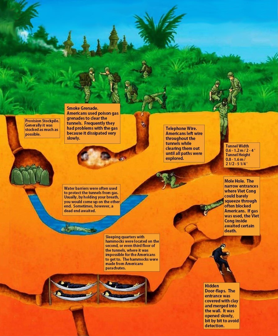 He also mentions another "pleasant surprise" found in the tunnels, the stench of dead bodies kept there by Viet Cong! That alone would scare away most people.