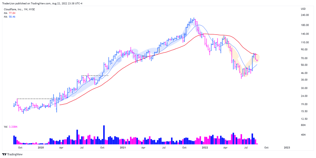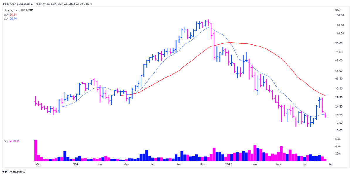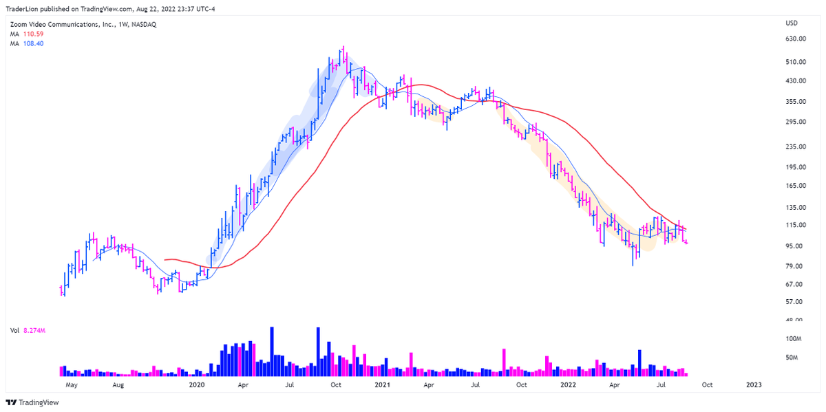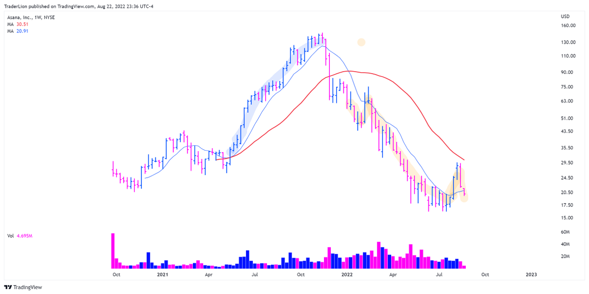Then look for when the stock was below a declining 30 week for a long time - color red