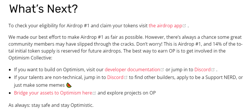If you missed the first Optimism airdrop, the good news is that the team mentioned that 14% of the $OP supply is reserved for future airdrops.