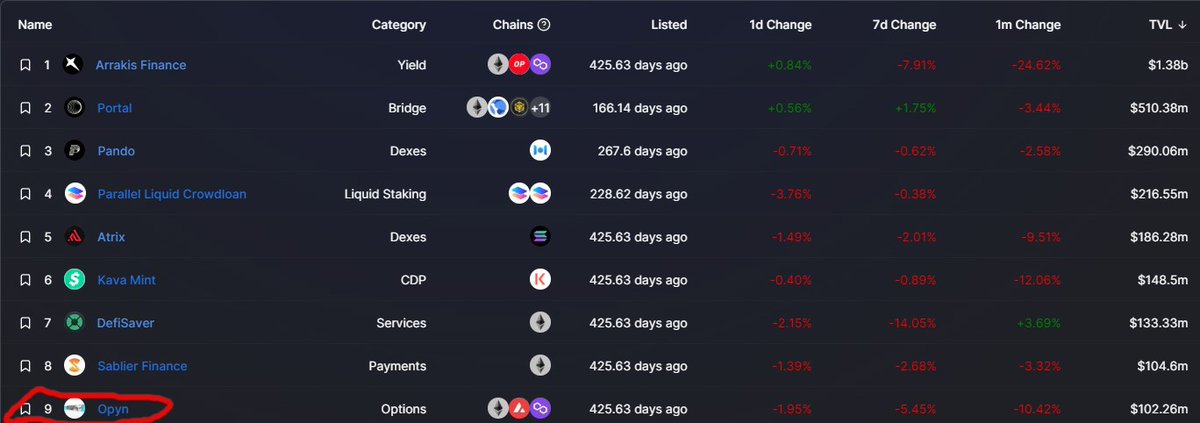 But let's look at Opyn, an options protocol that can be found in @DefiLlama