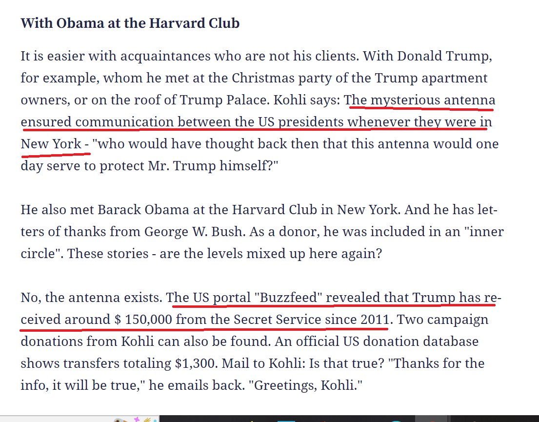 "Ulrich Kohli and Donald Trump climbed a long flight of stairs to inspect a secret antenna on the roof level of the 55-story skyscraper. The Swiss lawyer had bought two apartments in Manhattan from the real estate mogul .."