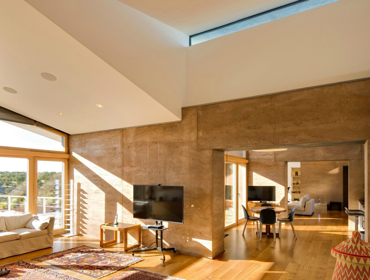 A rammed earth dwelling is like a bear's cave. It can be a place truly like no other, where you can at one point touch something that resembles a slice of sedimentary wall — as if some primordial titan has carved a butchers knife through the hillside...