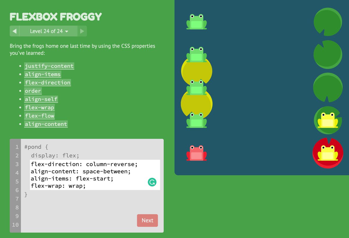 This game is personally how I learned CSS Flexbox several years ago, so it holds a special spot for me ๐