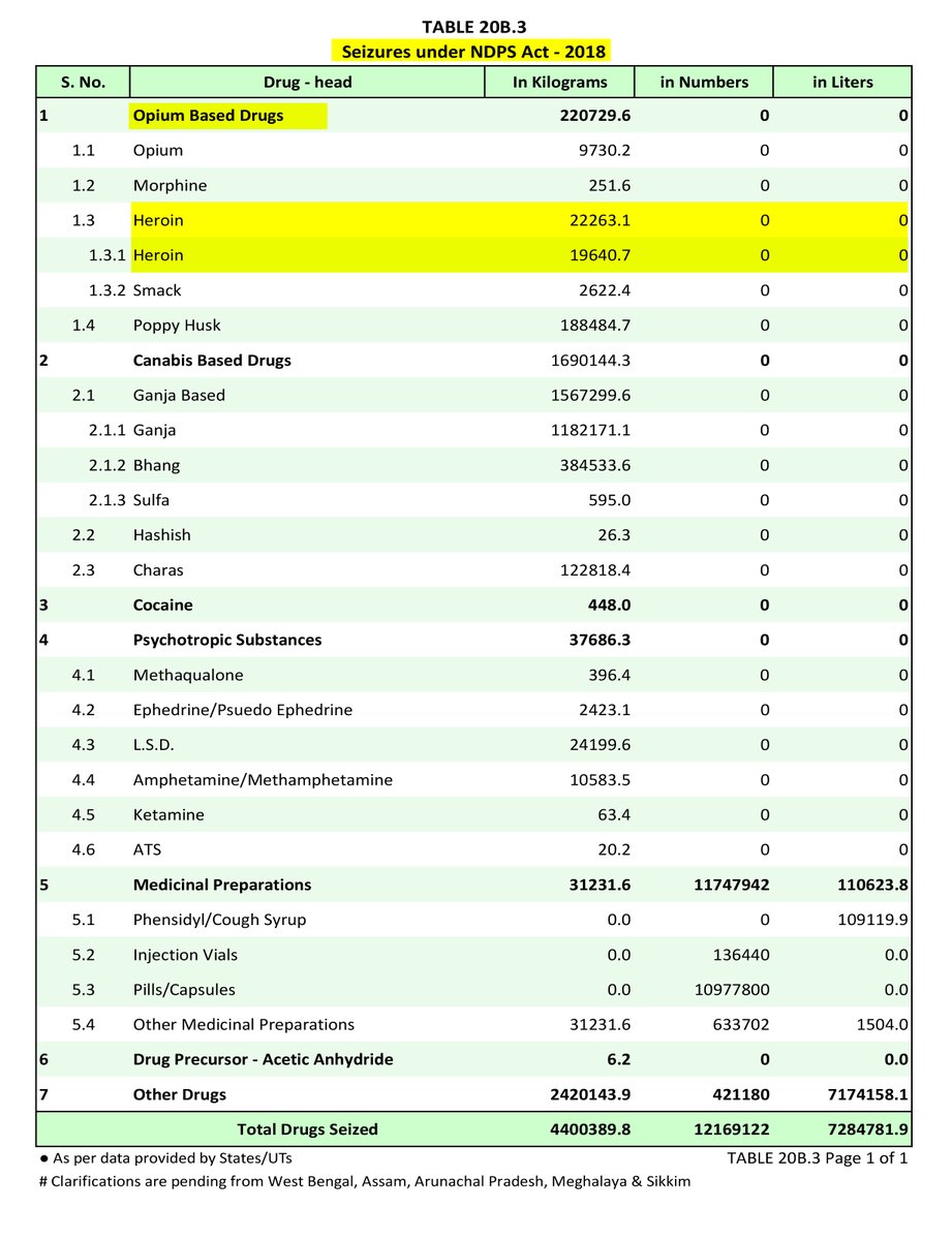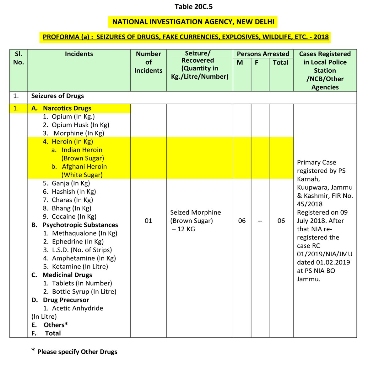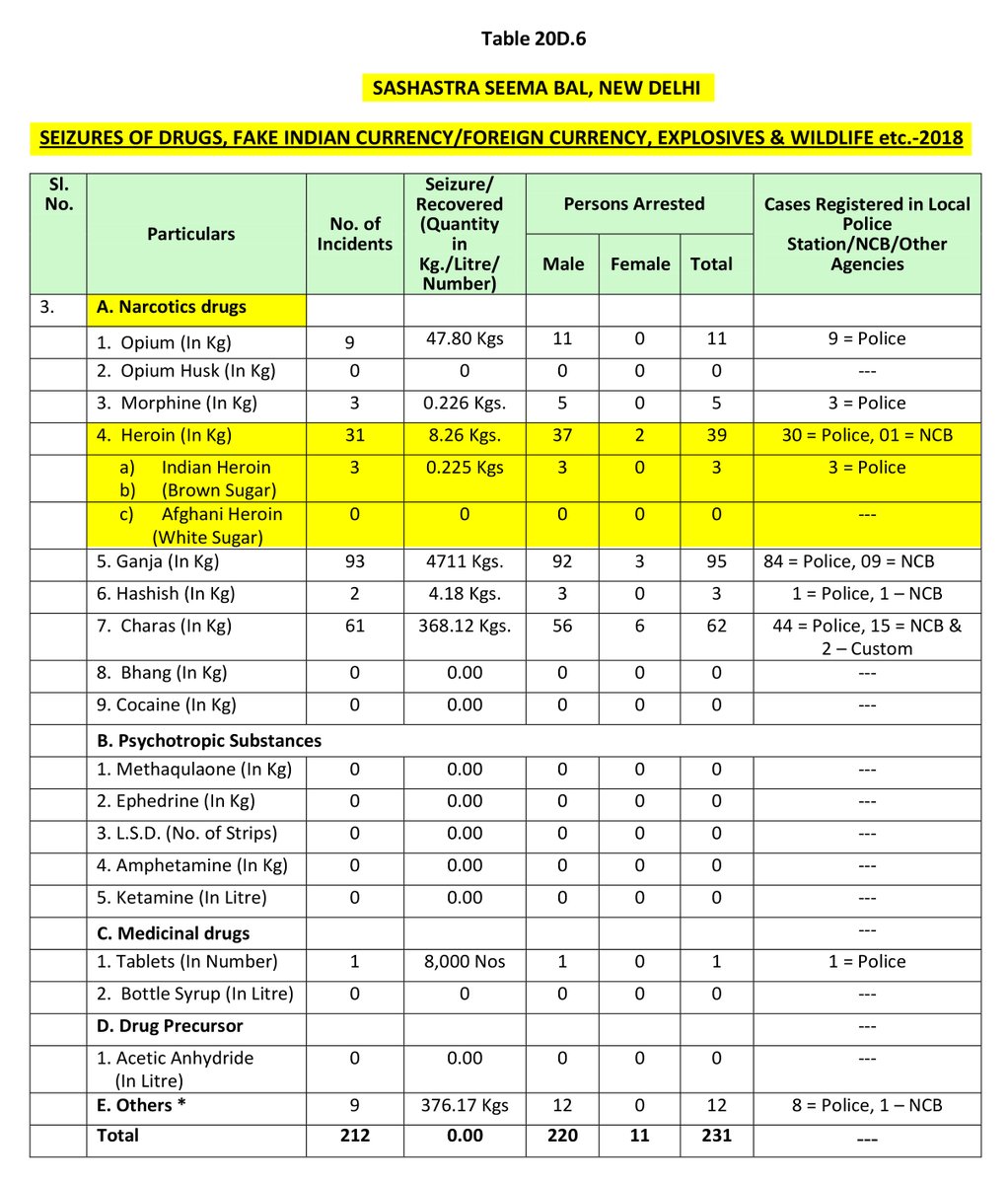 Check out the details of heroin seizures by other agencies reported in 2020 NCRB-Report
