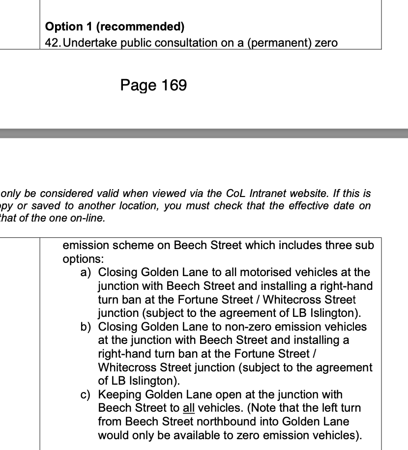 But meanwhile on the City of London streets and walkways committee, we can expect a consultation on filtering Beech Street to go live in October, with delivery now in 'Spring 2023' democracy.cityoflondon.gov.uk