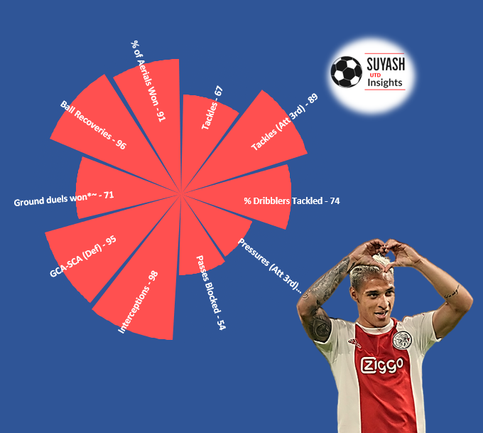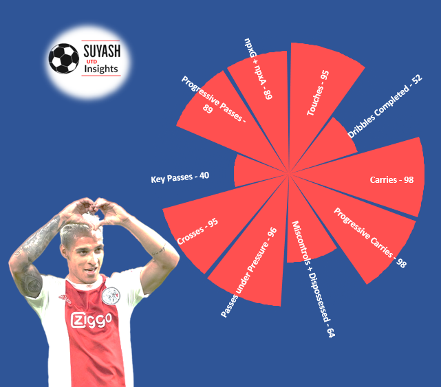 Antony is like a traditional wide player with flair that combines with teammates instead of focusing on the final ball or scoring too much hence his G+A is not as high as modern wide forwards.
