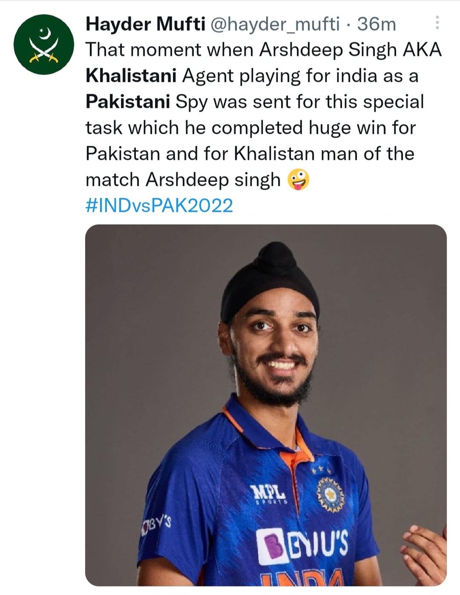 It's clear that accounts from Pakistan started targeting Arshdeep Singh by calling him Khalistani