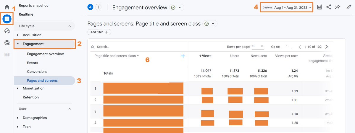 Here's how you check your # of page views, most visited pages & # of sessions/month on GA4. 🧵👇