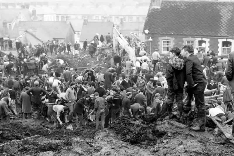 On the eve of the disaster, an eight-year-old boy named Paul Davies had drawn massed figures digging in the hillside under the words βthe end.β