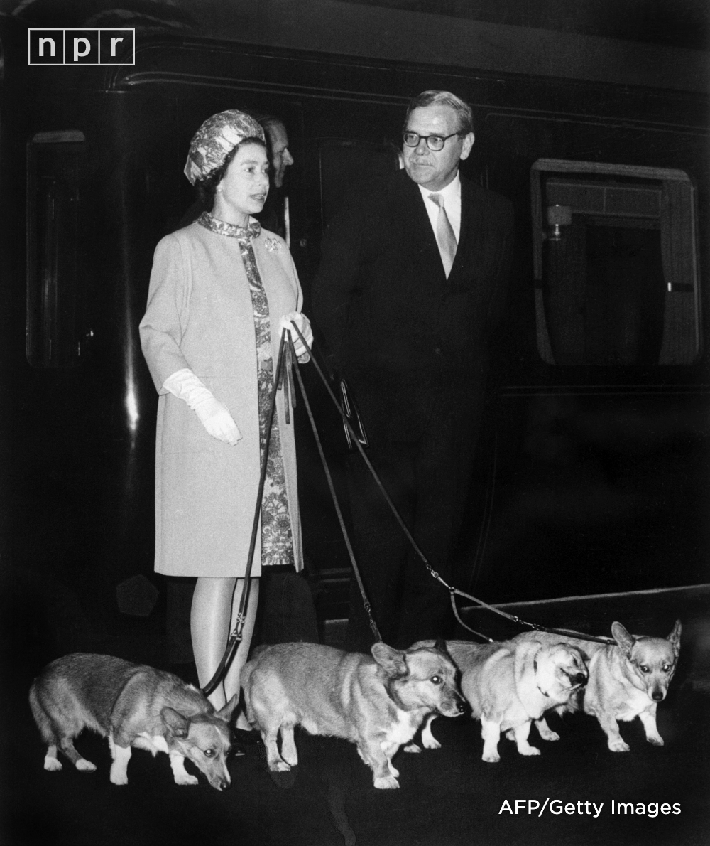 Queen Elizabeth II arrives at King's Cross railway station in London October 15, 1969 with her four dogs of Corgis breed after holidays in Balmoral Castle in Scotland and before welcoming at Buckingham Palace U.S. astronauts of Apollo 11 who walked on the Moon.