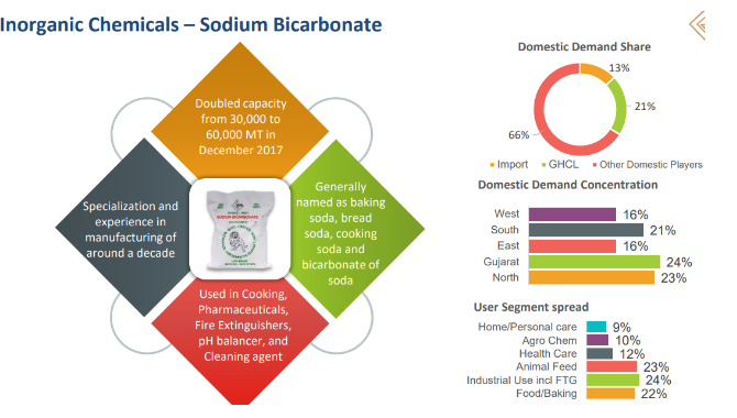 (iii) GHCL also produces around 65 Thousand MTPA of Sodium Bicarbonate which is an important raw material for industries like bakery, pharma, fire extinguisher manufacturing, cleaning agents, etc.
