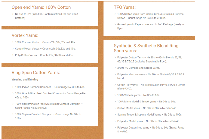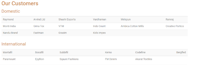 The yarn produced here caters to various leading apparel and textile brands like Raymond, Tessitura Monti, Soktas, H & M, C & A, etc.