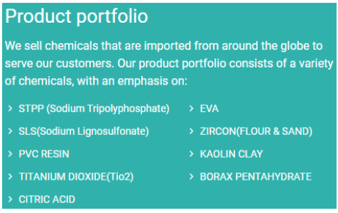 A major slice of business owes to its sales of Industrial grade salt. Salt production saw a major downfall during the last 3 years due to unseasonal rains as salt production entirely depends on climatic conditions.