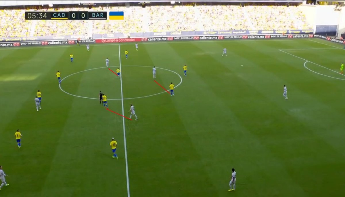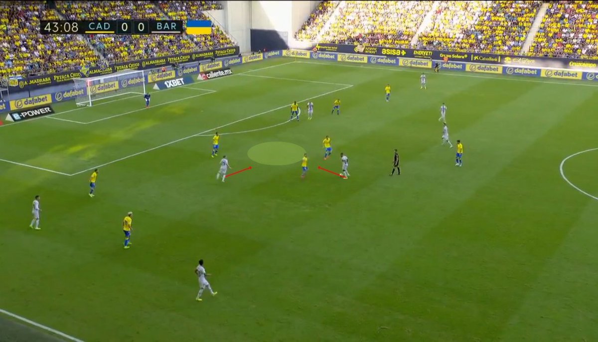 Barça played a much better second half offensively, giving rise to more runs in behind and ratifying the ball quicker between the layers, not providing Cádiz with the opportunity to set up and compelling the home team to forfeit their silhouette.