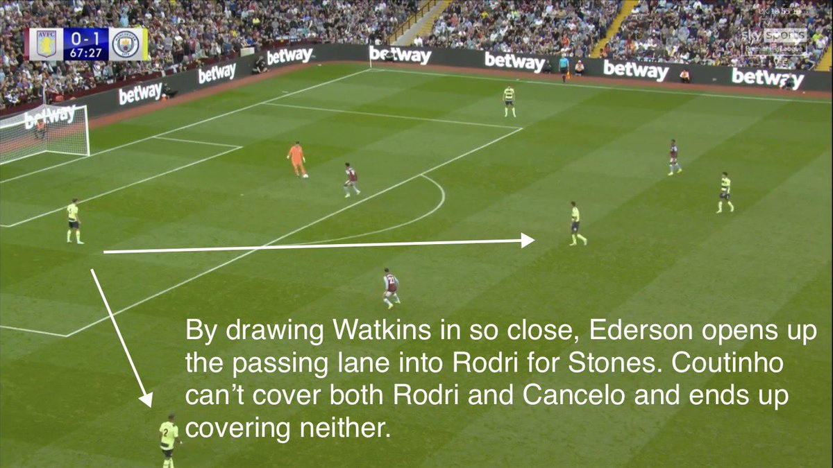 There’s no team in the league comes close to City when playing out from deep and Ederson is a huge reason for that. We’re so used to these patterns of play that we probably take them for granted. They happen many times in a match and they’re crucial to the way City play 14/