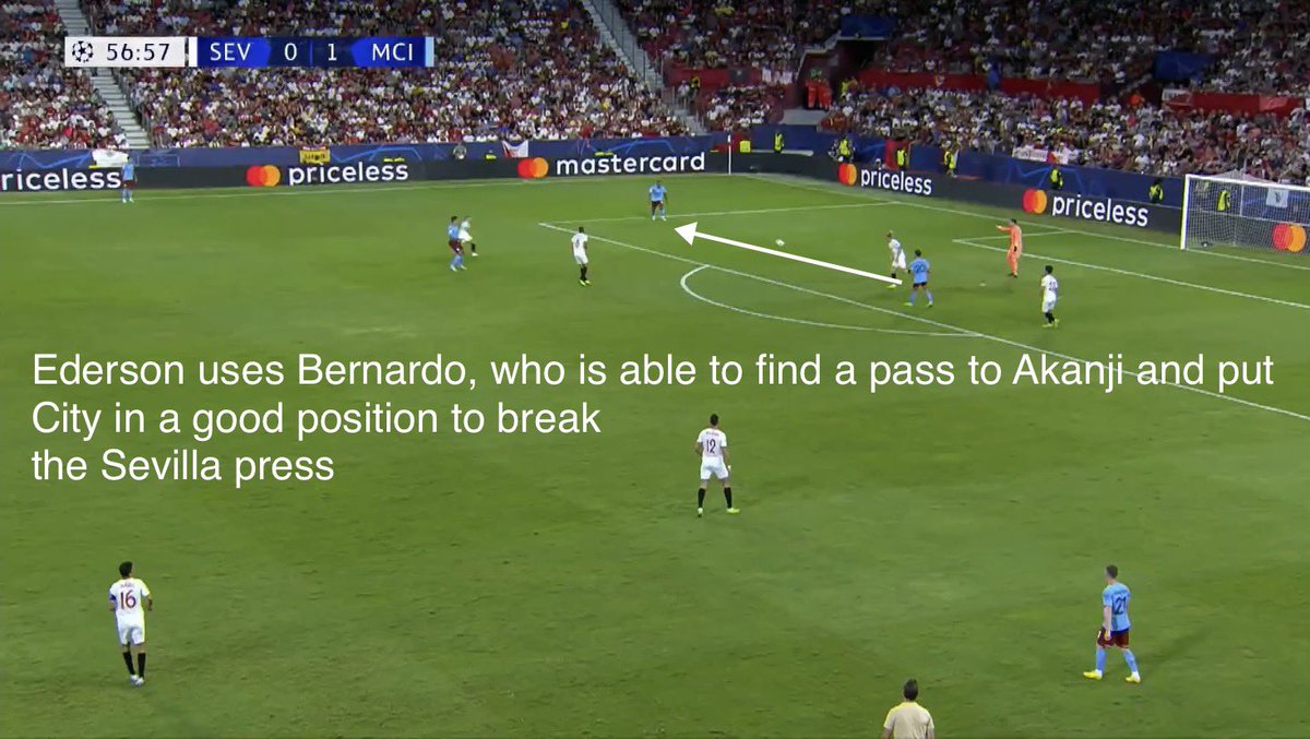 You often hear rival fans denounce City’s opponents lack of pressing. But City’s goalkeeper and back 4 are so good at playing out around their own box that what often happens is teams press City but quickly lose interest once the press has been beaten a couple of times 2/