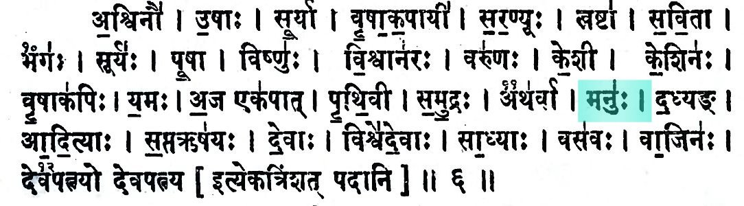 Mánu appears to have been regarded as the son of Vívasvat, for he's once called Mánu Vívasvat (मनौ॒ विव॑स्वति॒). In the later literature (AV, ŚB,+) ..