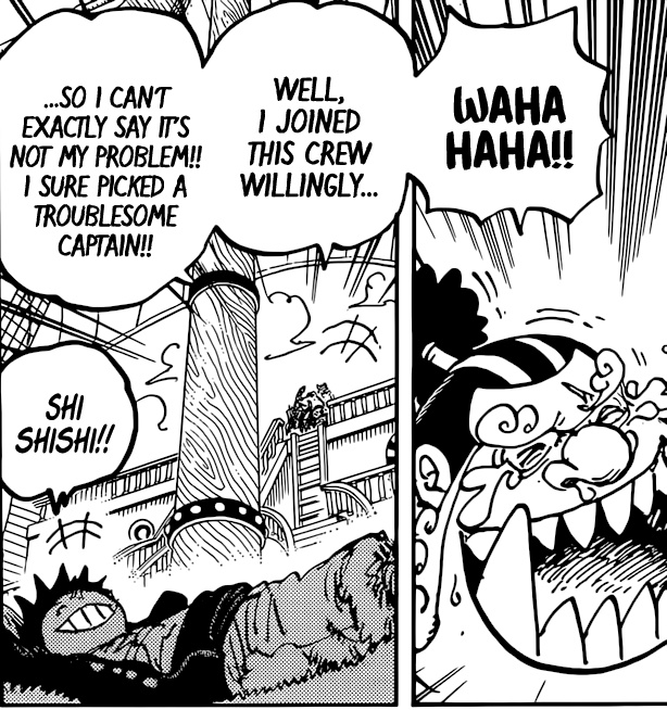 Luffy is VISIBILY shown to be romanticising it. And we all know what Luffy's idea of Romance is! #ONEPIECE1060