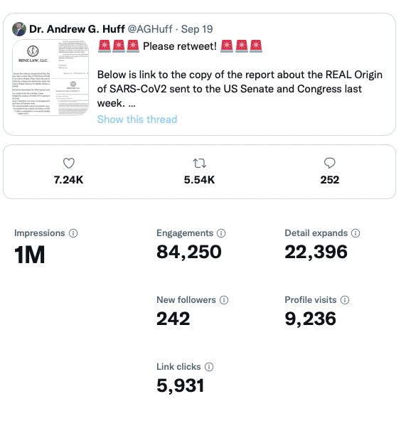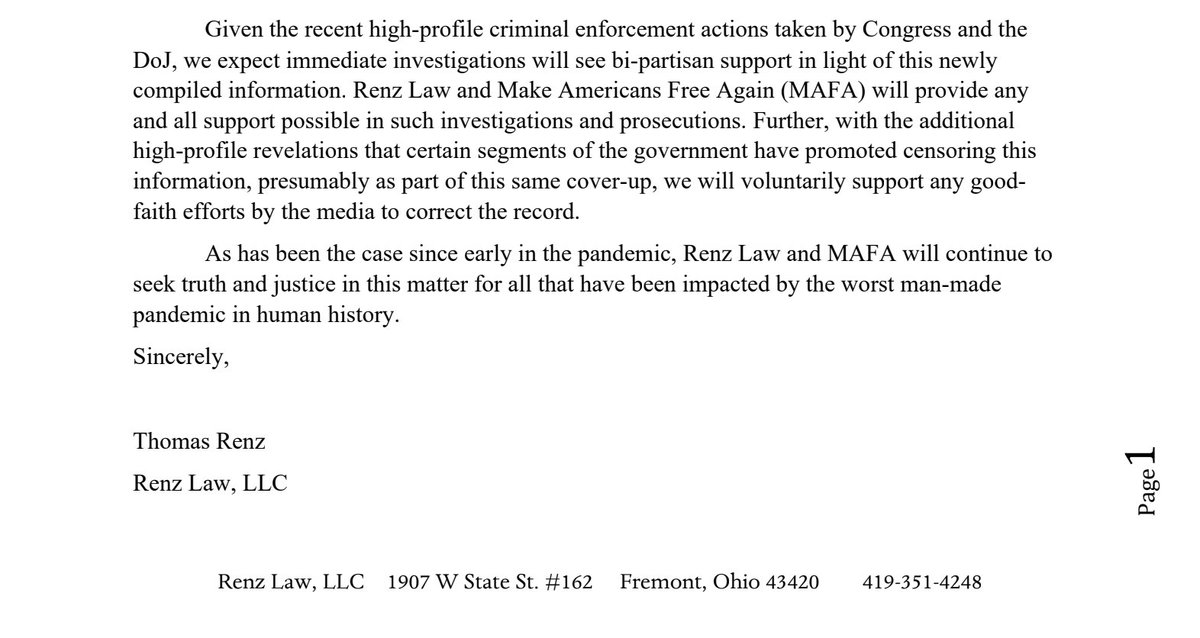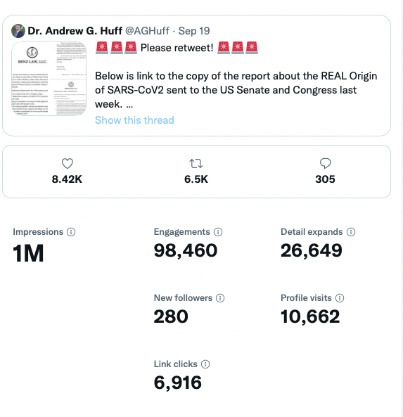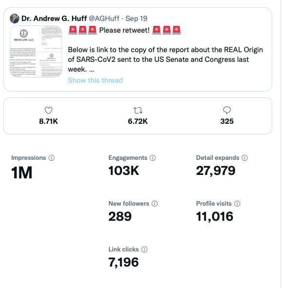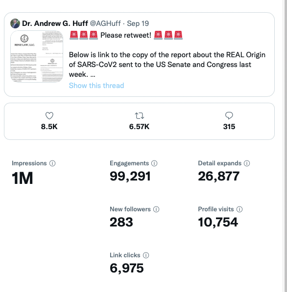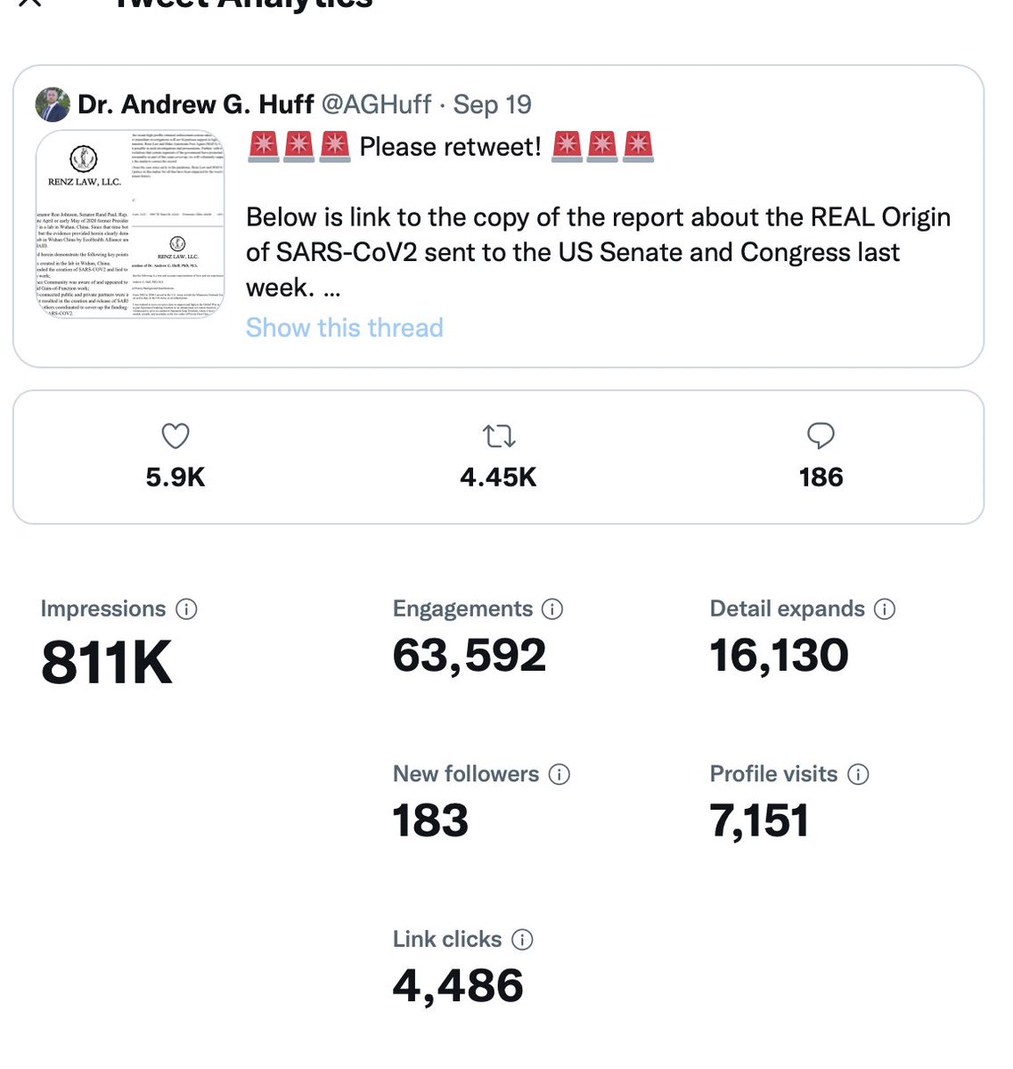 Below is link to the copy of the report about the REAL Origin of SARS-CoV2 sent to the US Senate and Congress last week.