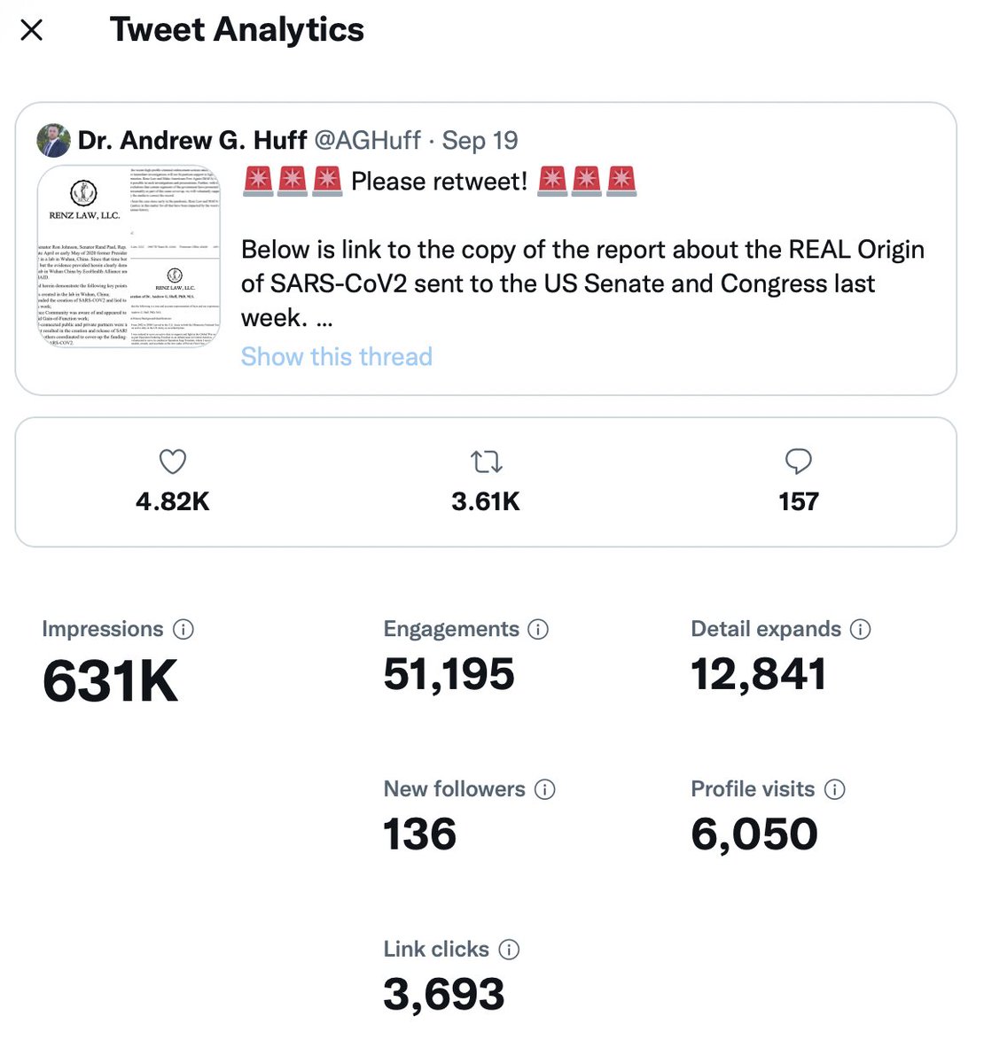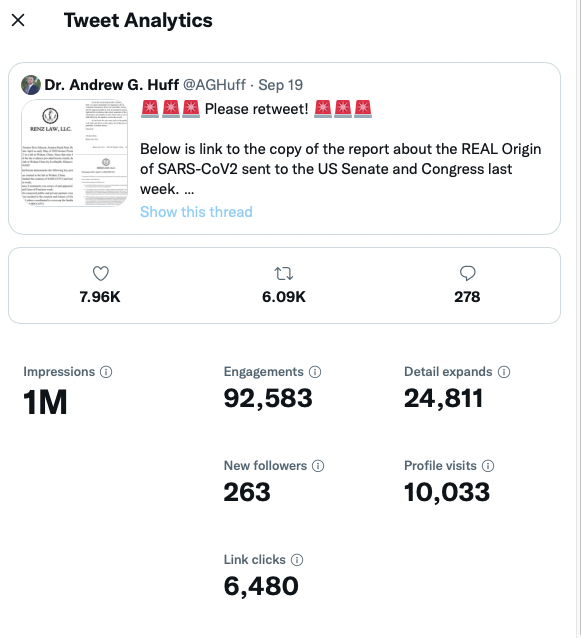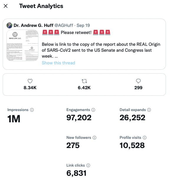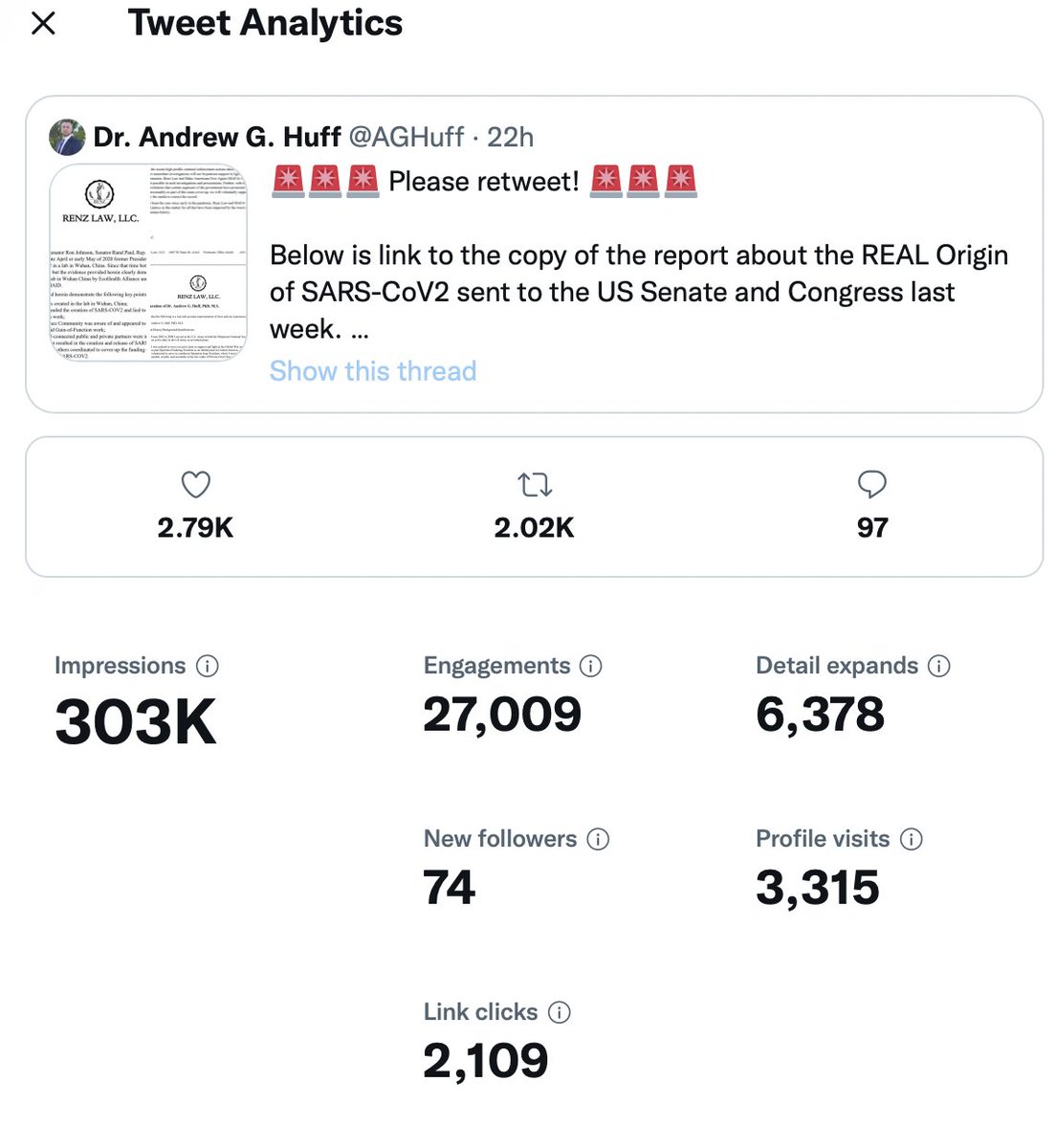 Below is link to the copy of the report about the REAL Origin of SARS-CoV2 sent to the US Senate and Congress last week.