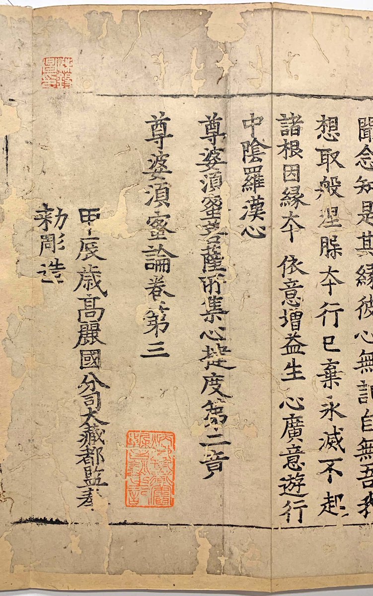 Printed in Korea between 1011-1082 AD. This sutra is from the Chojo [Chudiao] first edition Tripitaka collection of Korea, and was a direct copy of the Kaibao Tripitaka, the first printed Tripitaka. 1/