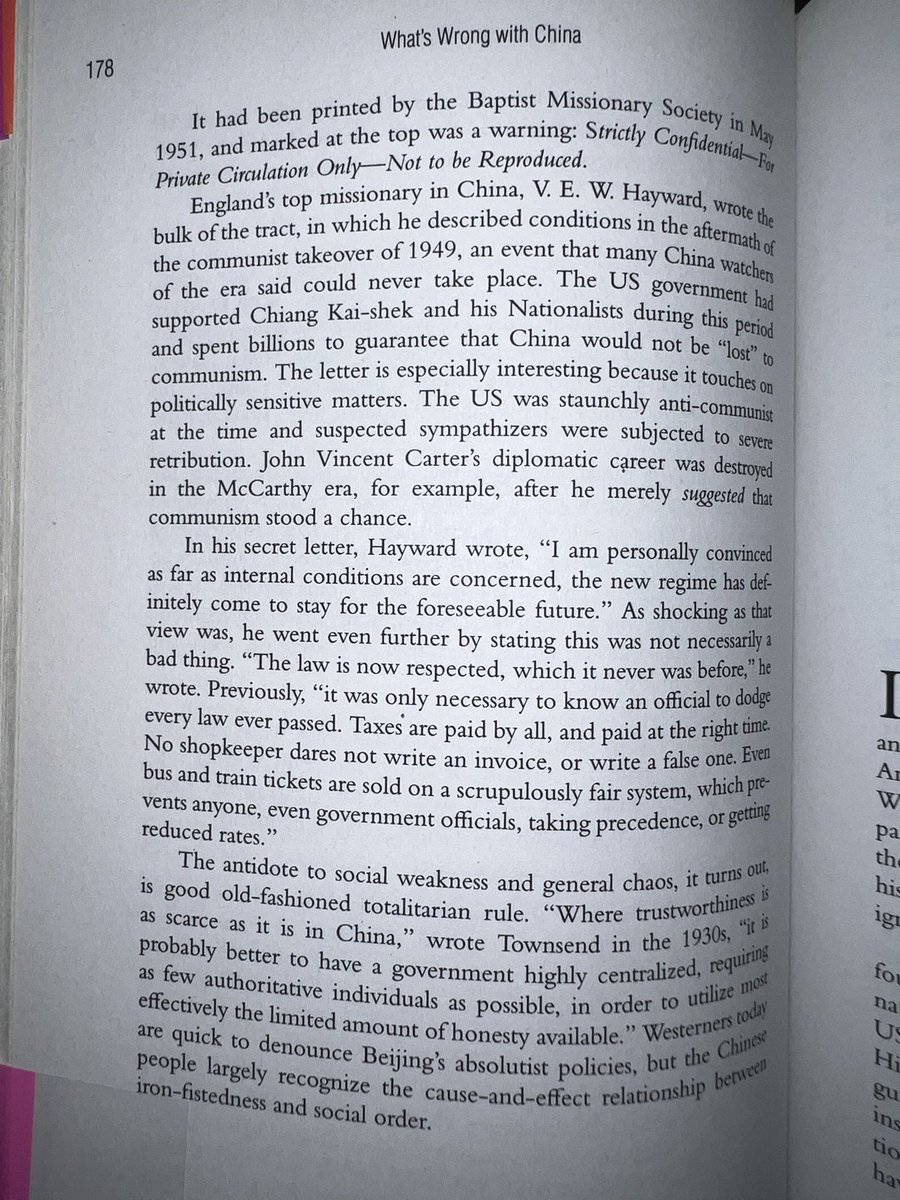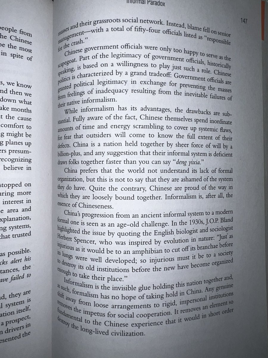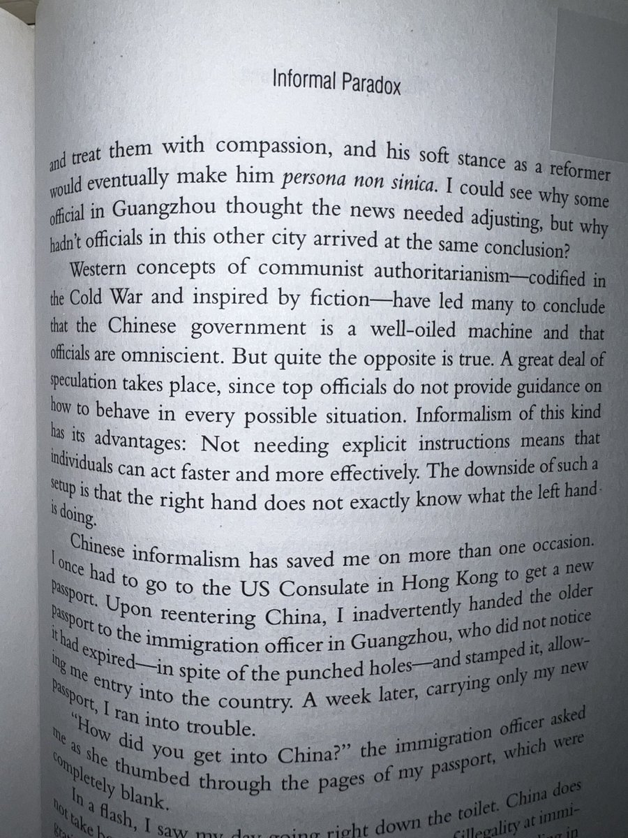 His basic thesis is that the closer we are to China, the less we understand the Chinese, particularly the "informal" nature of their cultural & political systems. Since this is difficult concept for westerns to get, I will provide some examples in thred below.