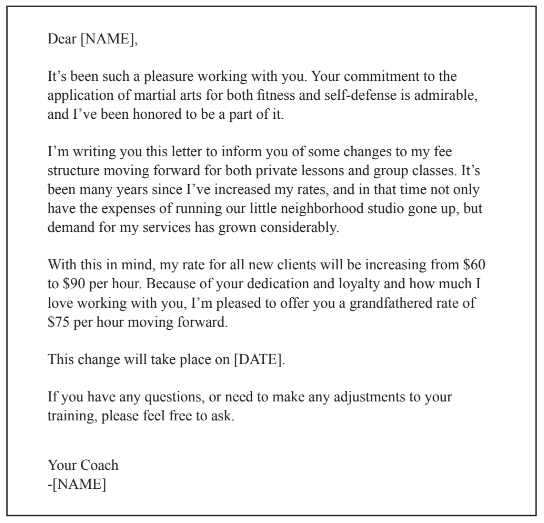 Within a week of sending this letter, House of Combat was averaging $22.50/hr more per private session.